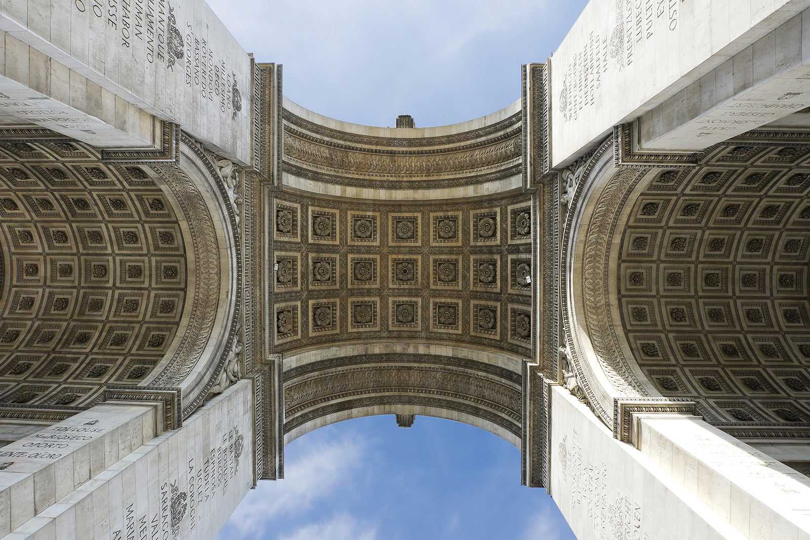 Jean-François-Thérèse Chalgrin designed the arch, which was inspired by the great triumphal arches of ancient Greece and Rome, especially Rome's Arch of Titus. The monument is 50 metres high, with the names of famous battles from the Revolution and the First Empire. A plaque set on the floor details Charles de Gaulle's famous French Resistance speech from 1940.