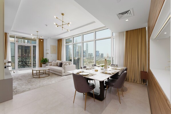 This apartment puts you within a 10-minute drive of Dubai Marina Mall and The Walk. Guests can take a dip in the outdoor pool, and freebies like WiFi and self parking are added perks. The property features a dining table.